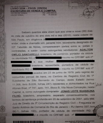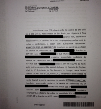 As escrituras do Cartório de Registro de Imóveis de Atibaia comprovam que uma parte do Sítio Santa Bárbara pertence a FERNANDO BITTAR: