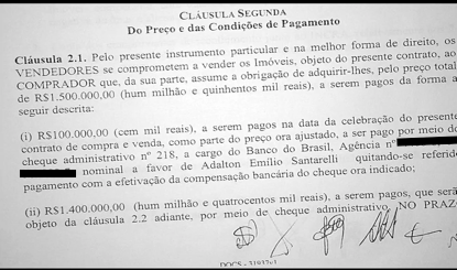 E o contrato de compra e venda comprova que os pagamentos foram feitos por meio de cheques administrativos, ou seja: não há hipótese de lavagem de dinheiro, fraude, sonegação ou uso de “laranjas”