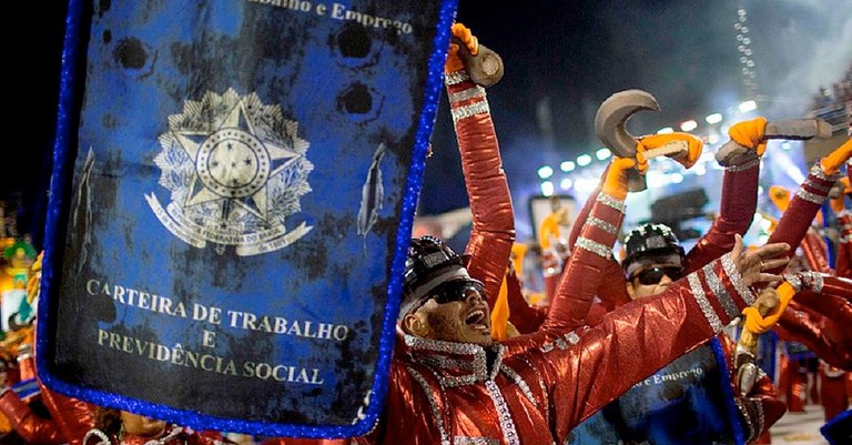 A ala “Guerreiros da CLT”, durante o desfile da Paraíso do Tuiuti (Reprodução)