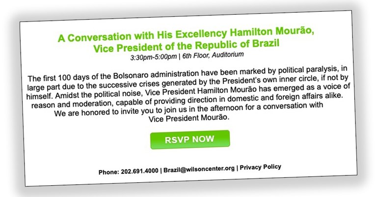 Agora, o CIA-Center vai receber o vice Mourão, na qualidade de "voz de razão e moderação, capaz de dar rumo a questões domésticas e externas"...