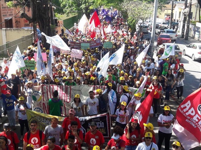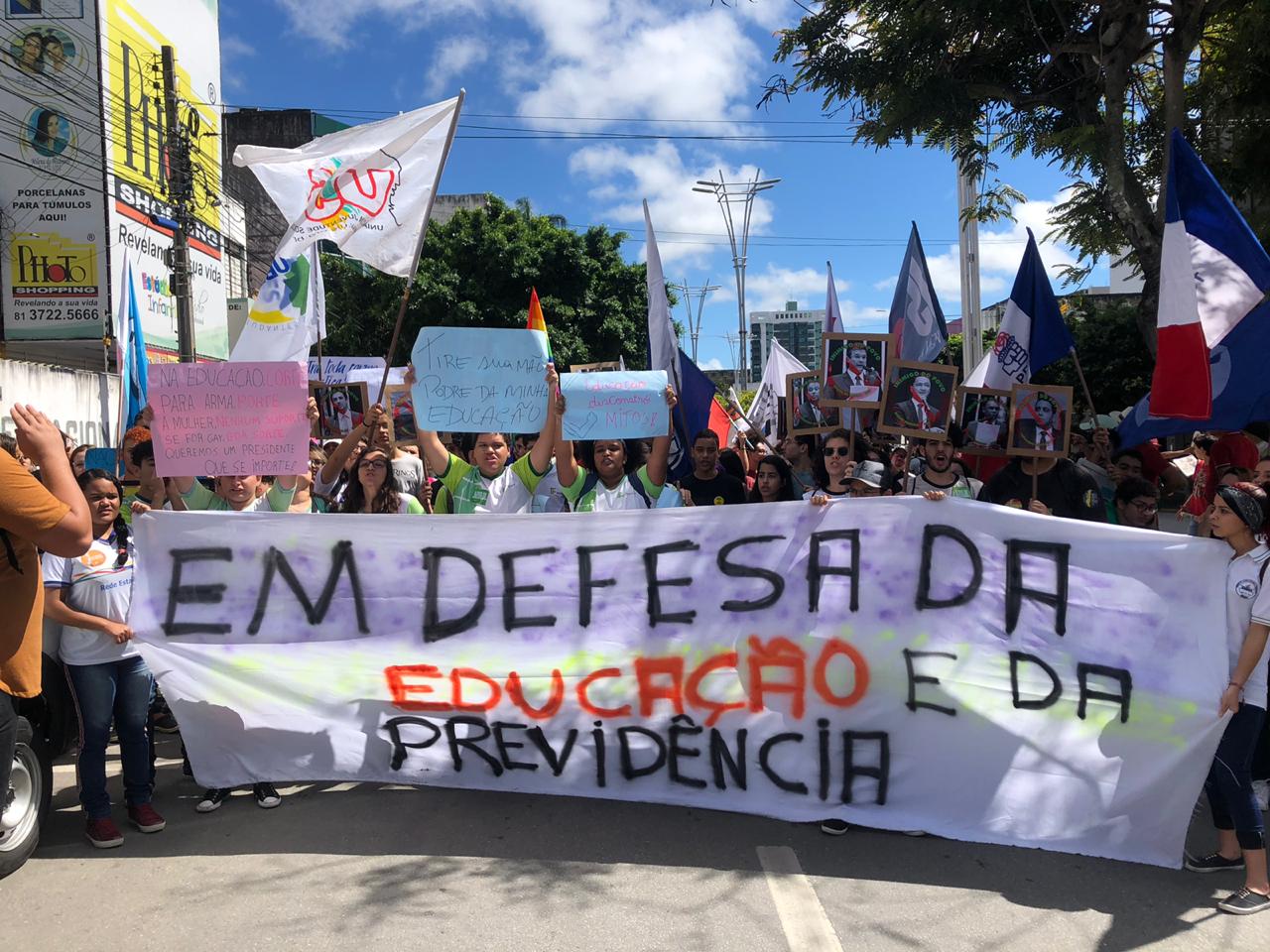 Em Maceió-AL, estudantes e trabalhadores foram às ruas contra os cortes na educação e contra a reforma da previdência! #Tsunami13Agosto pic.twitter.com/0HoEBu8f91