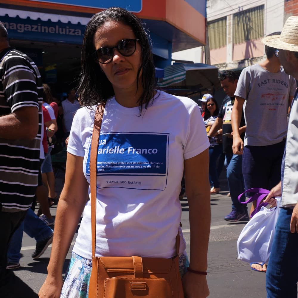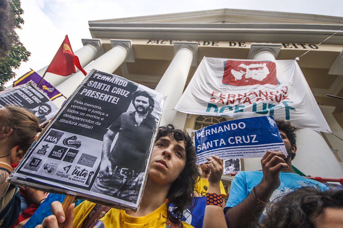 19:10 - Rosalina Santa Cruz, irmã de Fernando Santa Cruz (presidente da OAB atacado por Bolsonaro), em marcha com o DCE da Universidade Federal Fluminense e da União Estadual dos Estudantes do Rio de Janeiro: