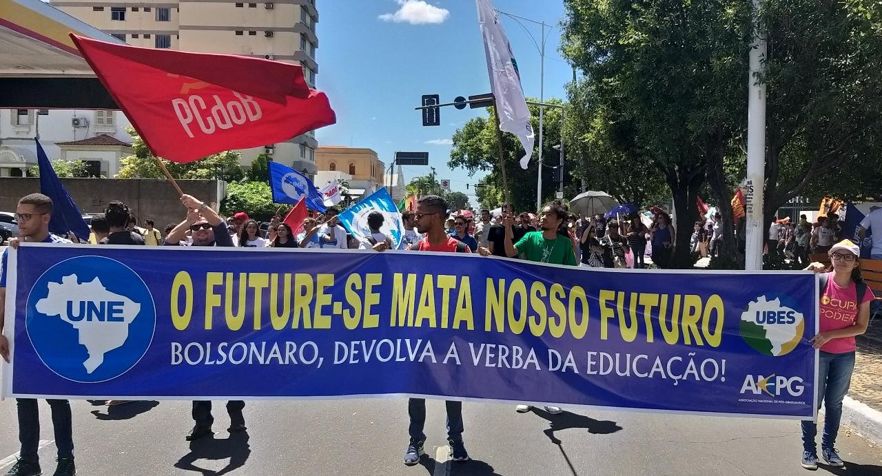 Professores, estudantes e servidores da Educação marcham em Juazeiro do Norte (CE) contra a privatização do ensino público pelo programa Future-se.#Tsunami13Agosto