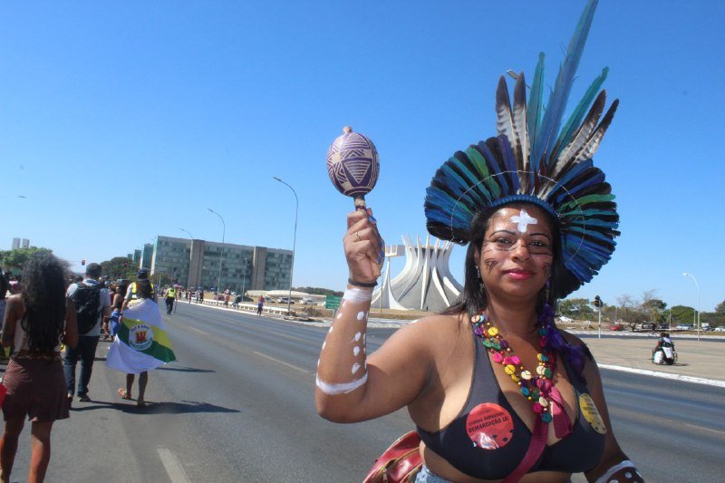 12h25 - Marcha das Mulheres Indígenas e Ato #13A chegam em frente ao Congresso Nacional (DF):