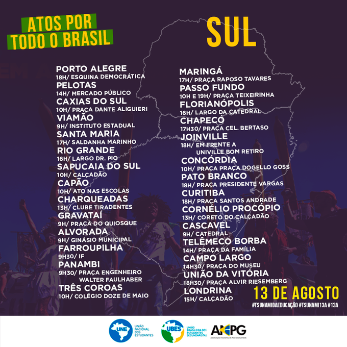 Video: Gabriela Nogueira/ Estudantes NINJA#Tsunami13Agosto #Tsunami13A #TsunamiDaEducacao #13A #EstudantesNINJA pic.twitter.com/wYdSvwgdkY