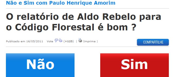 Não e Sim. O relatório de Aldo Rebelo para o Código Florestal é bom ? Vote !