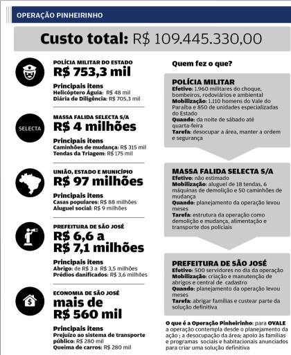 A Operação Pinheirinho terá um custo final de pelo menos R$ 109,4 milhões, sendo mais de R$ 103 milhões dos cofres públicos.