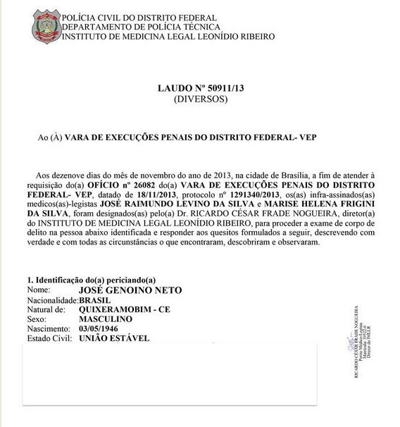 O laudo do IML de Genoino. A dedicação de Dirceu