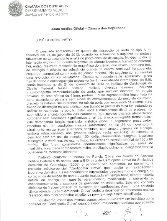Mostram o quadro de cardiopatia grave, recomendam esperar noventa dias para nova avaliação, mas indicam que a bomba relógio está lá dentro do tubo de 15 cm na aorta dele.