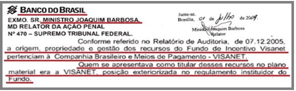 1 – O dinheiro não era do Banco do Brasil, e sim da Visanet, empresa 100% privada.