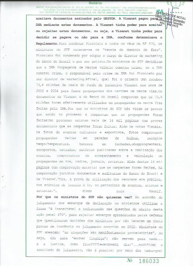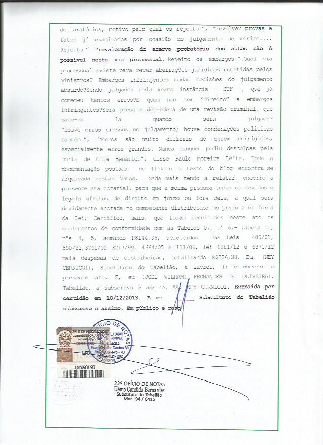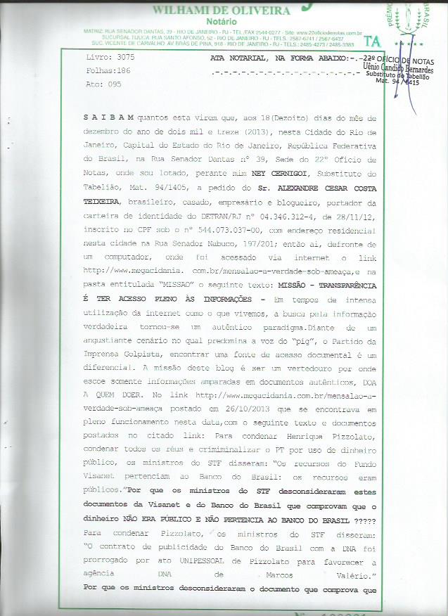 Trata-se de uma “Ata Notarial”, lavrada em cartório do Rio de Janeiro, trazendo informações e documentos oficiais que aniquilam as teses centrais da acusação da AP 470.