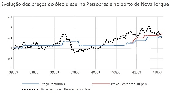 De 2005 a 2014, o preço médio de realização da gasolina nas refinarias da Petrobras foi de R$ 1,085, enquanto no porto de Nova Iorque foi de R$ 1,207. Para o óleo diesel, o valor da Petrobras foi de R$ 1,203, enquanto em Nova Iorque foi de R$ 1,299.
