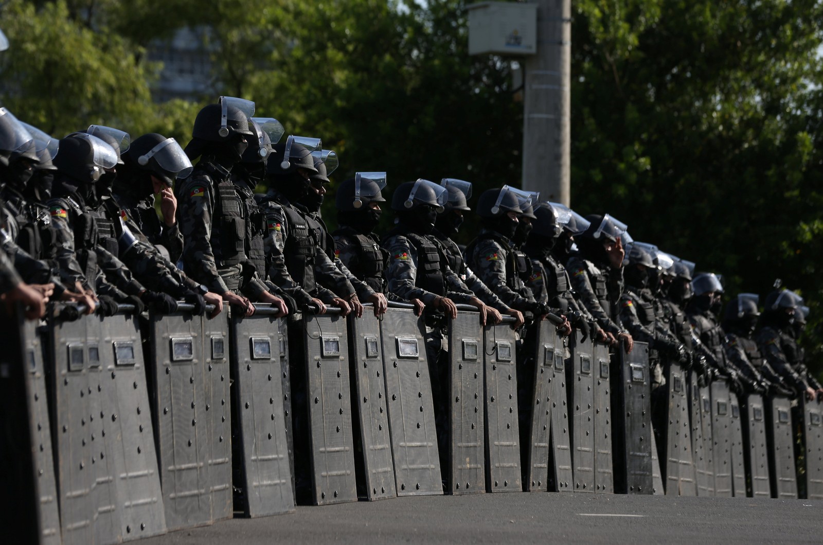 13:28: Tropa de choque continua a postos ao redor do TRF-4.