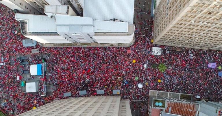 Lula no maior comício da história de Porto Alegre, na terça-feira, 23/I (Crédito: Ricardo Stuckert)