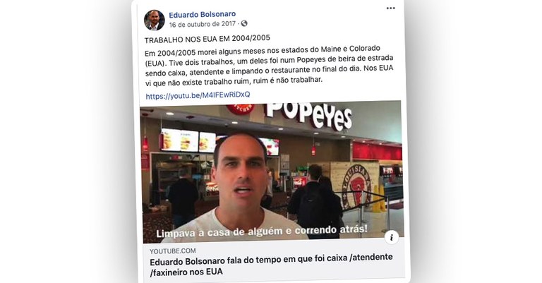 Embora Eduardo Bolsonaro tenha dito que fritou hambúrguer nos Estados Unidos, a lanchonete onde ele afirma ter trabalhado só serve frango frito.