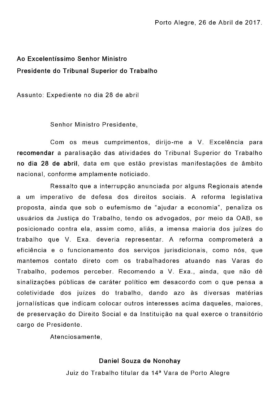O Conversa Afiada reproduz documento de adesão à greve geral de amanhã, 28 de abril, que contém grave admoestação ao filho de Yves Gandra, que chegou ao Tribunal Superior com a generosa ajuda do Ministro Gilmar Mendes, segundo indesmentida reportagem de André Barrocal: