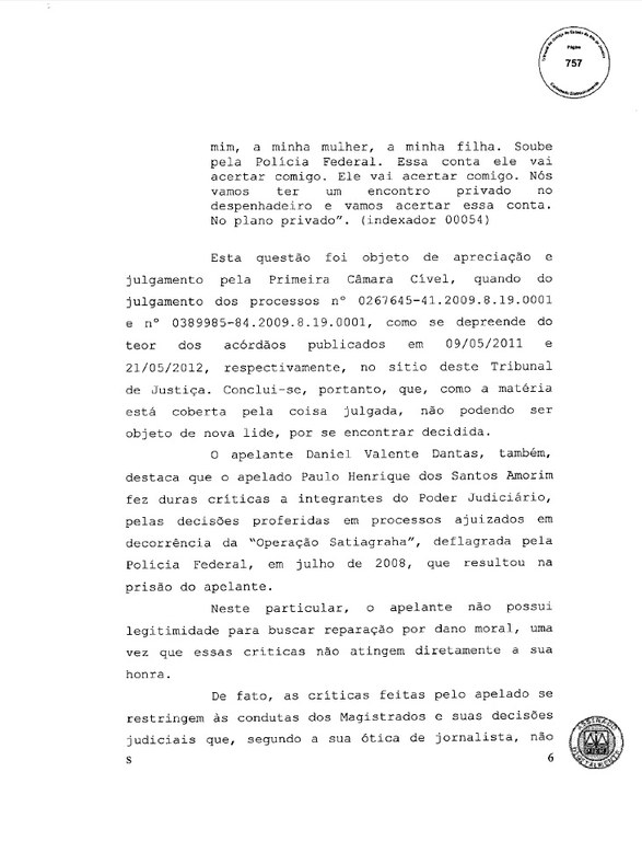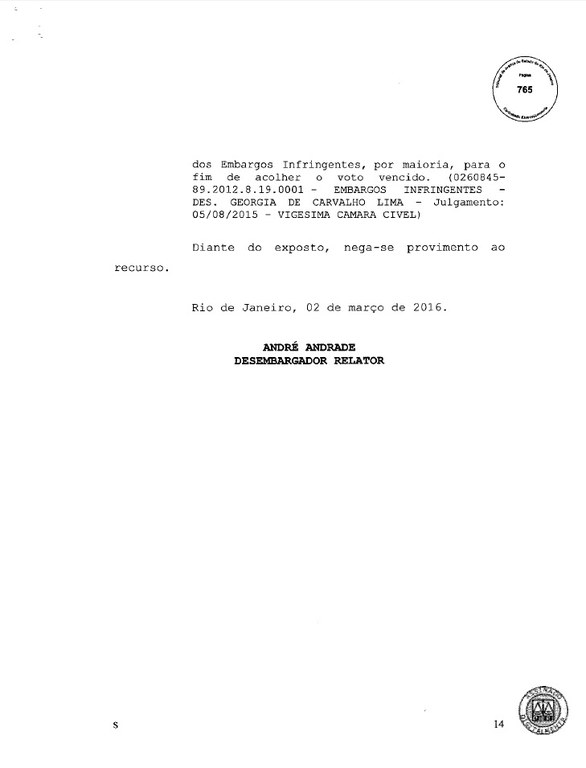 Para sua ciência, mais uma vitória sobre o Daniel Dantas. A Sétima Câmara Cível do Tribunal de Justiça do Estado Rio de Janeiro negou provimento ao recurso interposto.