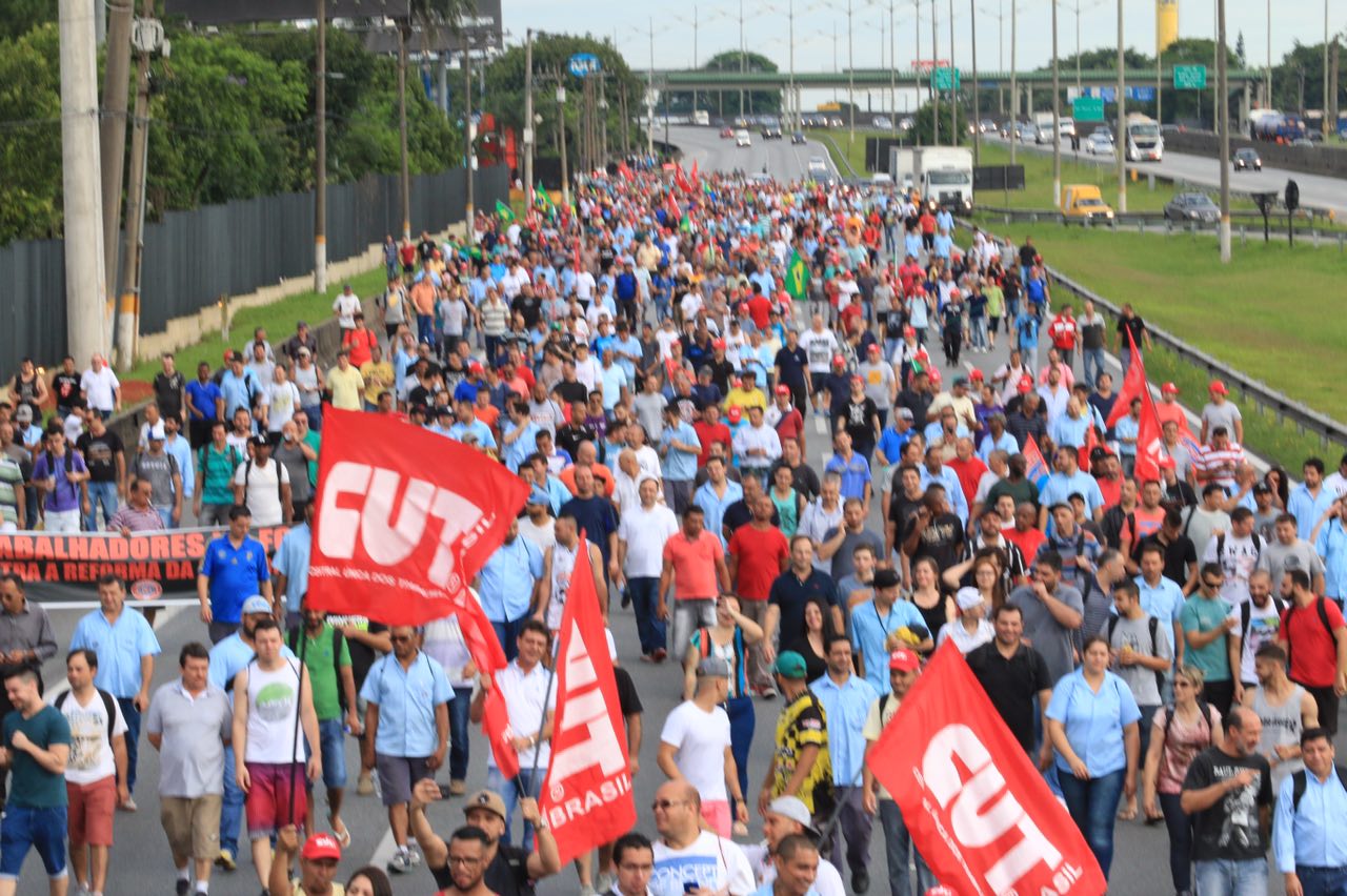 Ato na Rodovia Anchieta contra a Reforma da Previdência. 12 mil metalúrgicos do ABC presentes. Nossa luta, nossa força!