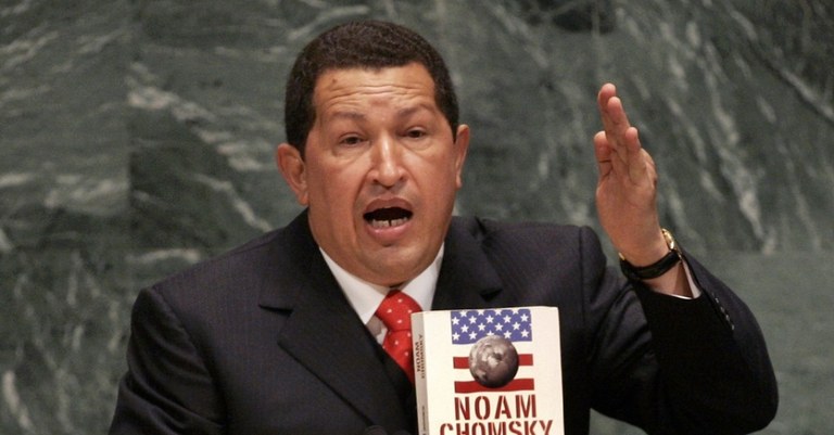 Para que serve a ONU: Chávez mostra livro de Chomsky depois de dizer que aquele pulpito não cheirava mais ao enxofre do Bush, que esteve ali na véspera