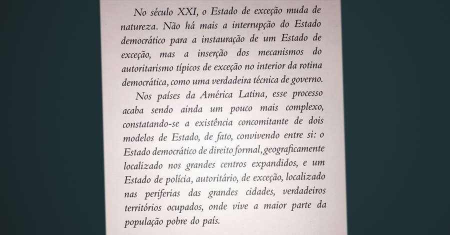 O livro também cita o papel do Judiciário nesses golpes - um tema frequente em sua obra é a Justiça como fonte de exceção, e não do direito.