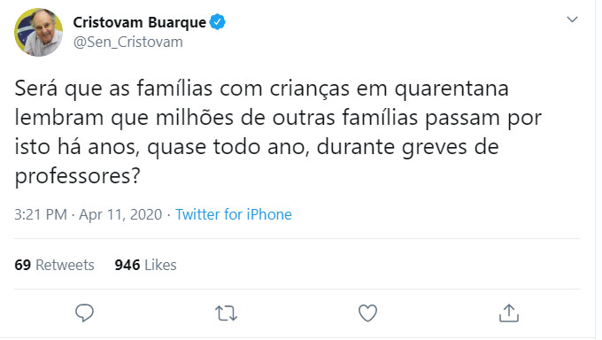 Mais uma pérola de Cristovam Buarque, que continua a se superar: