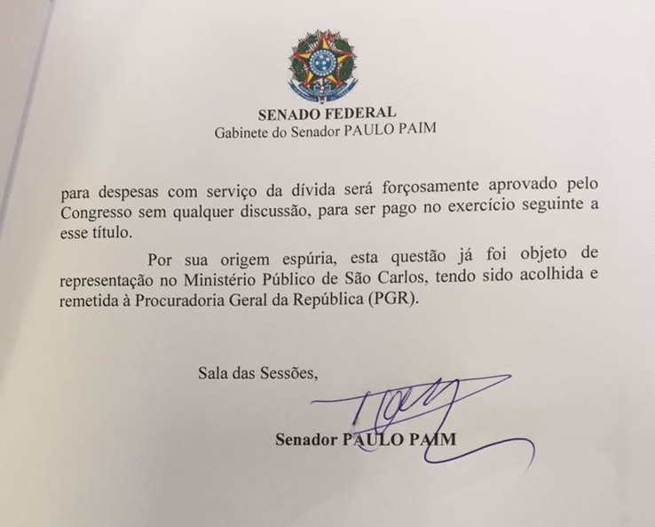 É o outro lado da moeda. A PEC 55 do Senado (241 na Câmara) condiciona os gastos de futuros governos em suas políticas públicas à manutenção do teto indexado pela inflação do ano anterior, mas deixa total liberdade para o Executivo pagar os serviços da dívida pública.