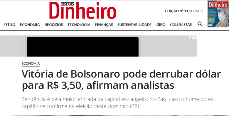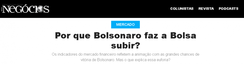 Outras previsões, como a feita pela Revista Época Negócios às vésperas do segundo turno, é ainda mais descarada: “Segundo analistas, parte importante dessa reação é o alívio por não haver um novo governo petista, possibilidade vista como “muito negativa” por investidores”
