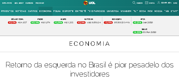 No Brasil, um caso sintomático de terrorismo econômico aconteceu durante as últimas eleições presidenciais: para legitimar o candidato que atendia aos interesses do capital financeiro com projeto ultraliberal, alguns dos principais jornais do país usavam supostos especialistas para moldar a opinião do eleitorado. Assim, criavam narrativas bisonhas, difíceis até de acreditar quando relembradas agora, com a política econômica de Jair Bolsonaro enterrando as esperanças do povo brasileiro.