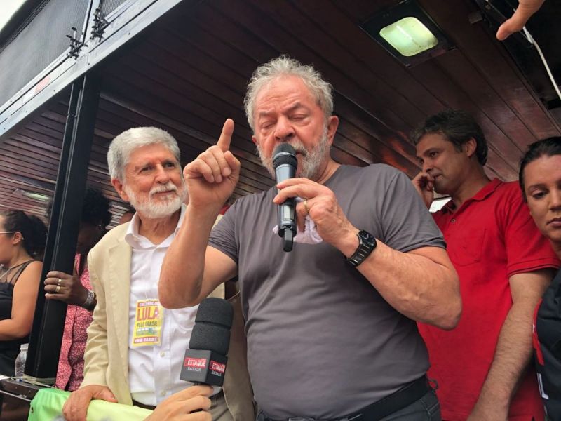 Para uma multidão que o aguardava na praça do Relógio, no centro da cidade, Lula reforçou que, caso seja presidente do país outra vez, vai recuperar os direitos sociais perdidos da população e revogar as medidas que estão acabando com o Brasil. "Se eu voltar a disputar as eleições eu vou ganhar. E a Petrobras vai voltar a ser do povo brasileiro." (...)