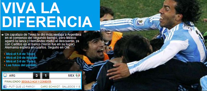 Mundo Você está aqui: Página Inicial / Mundo / 2010 / 06 / 27 / Viva a diferença: Tévez Viva a diferença: TévezO Conversa Afiada se rende ao futebol argentino. Tweet Compartilhar Compartilhar Email publicado 27/06/2010 Comments O Conversa Afiada se rende ao futebol argentino. Clique aqui para ver a capa do jornal Olé.
