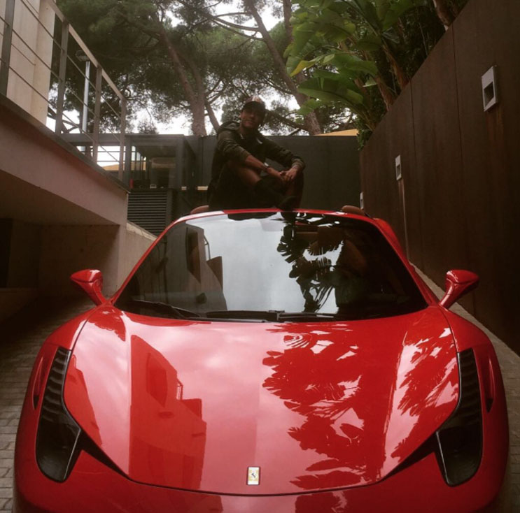 O mais famoso é uma Ferrari 458 Spider, devido a um pequeno acidente que ele sofreu, sem danos, enquanto estava indo para o antigo clube, o Barcelona. O carro custa cerca de 2 milhões de reais, faz de 0 a 100 km/h em 3,4 segundos e tem velocidade máxima de 320 km/h, conta com um teto em peça única que, com o toque de um botão, leva exatos 14 segundos para ser recolhido para dentro do porta-malas. Trata-se de uma peça sólida, e não de tecido.