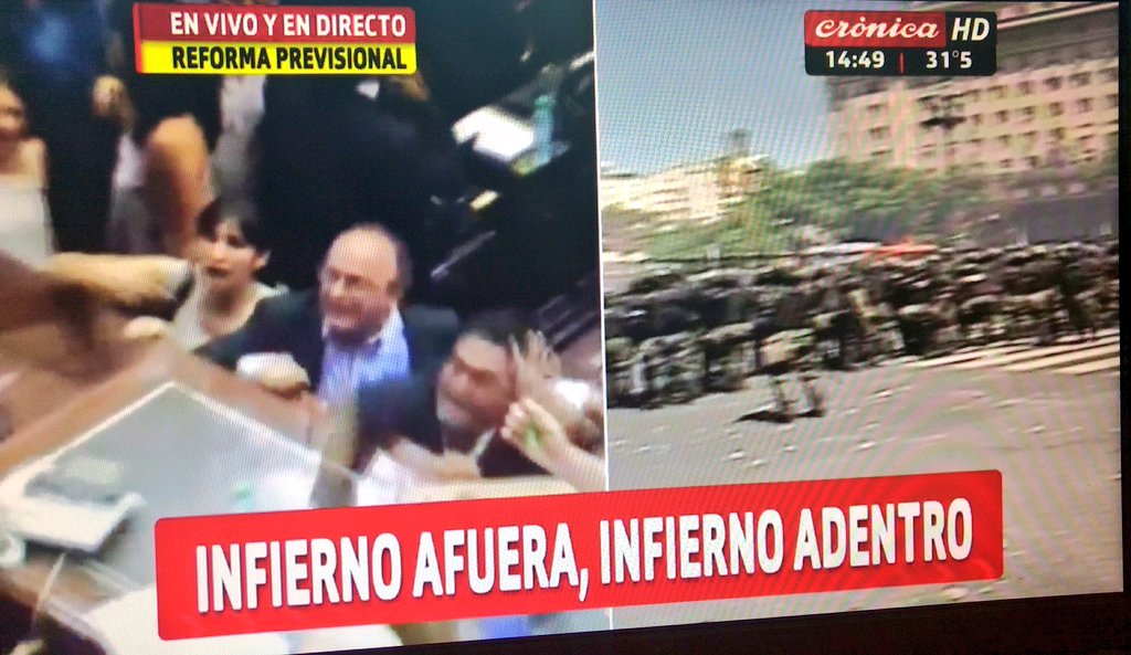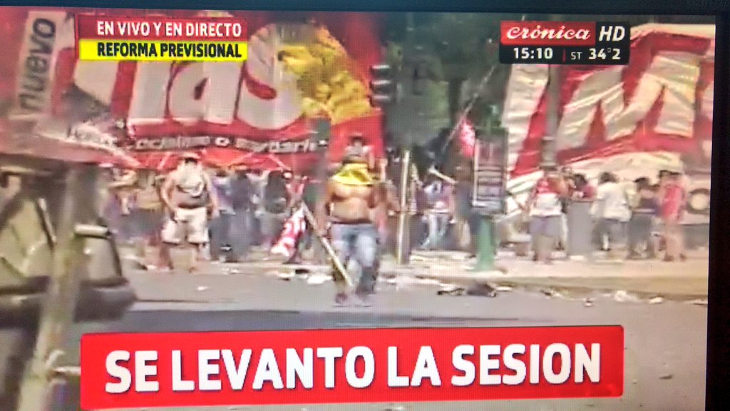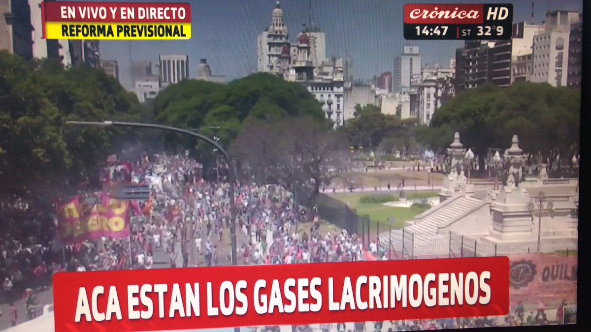 Repressão violenta na Argentina aos protestos contra a reforma da previdência ultraneoliberal de Macri, mas votação na Câmara - que seguia em ritmo de urgência - foi suspensa.
