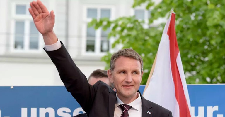 Bjoern Hoecke, um dos líderes da AfD, durante um ato contra a construção de uma mesquita em Erfur, na Alemanha, em maio de 2016 (Crédito: Jens Meyer/AP)