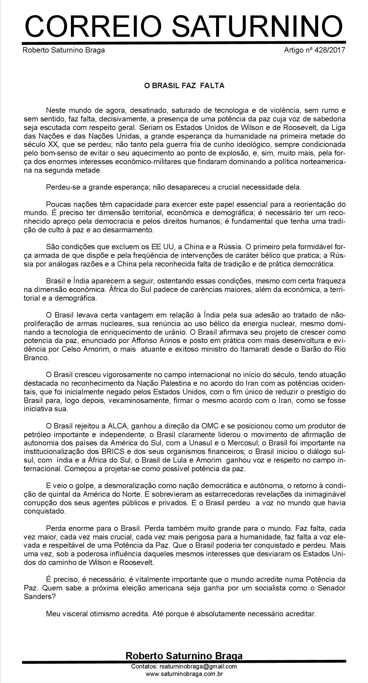 O Conversa Afiada reproduz, da nova edição do Correio do ex-senador Roberto Saturnino Braga:
