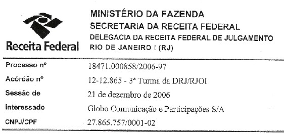Em uma de suas respostas, a Globo mencionou dívidas sendo negociadas no Conselho de Contribuintes. Tudo leva a crer que a emissora apelou ao Conselho, que conta com a participação de entidades privadas. Mais uma vez, estamos diante de uma situação nebulosa. A Globo disse que pagou o débito através da adesão ao Refis, em 2009. Como assim? No dia 21 de dezembro de 2006, a Receita deu apenas 30 dias, sob pena de cobrança executiva, para a empresa pagar ou apelar ao Conselho. Ela apelou ao Conselho? O roubo do processo lhe deu quantos meses de alívio? Qual foi a decisão do Conselho? Quem fazia parte do Conselho nesta época?