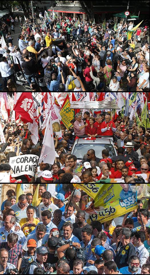 1º- No comício da Marina, temos uma flagrante bem mais alto do que o dos outros dois candidatos, para favorecer e, até denunciar, o esvaziamento no entorno do assunto principal.