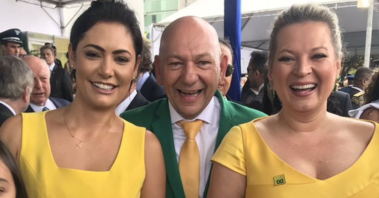 Michelle Bolsonaro teve seguidores no “estilo”. Luciano Hang, o “véio da Havan”, compareceu à cerimônia com seu já tradicional terno verde e amarelo. Já a líder de Bolsonaro no Congresso, deputada Joice Hasselmann (PSL-SP) disse no Twitter que não ficou “chateada” com o “look” igual ao da primeira-dama.