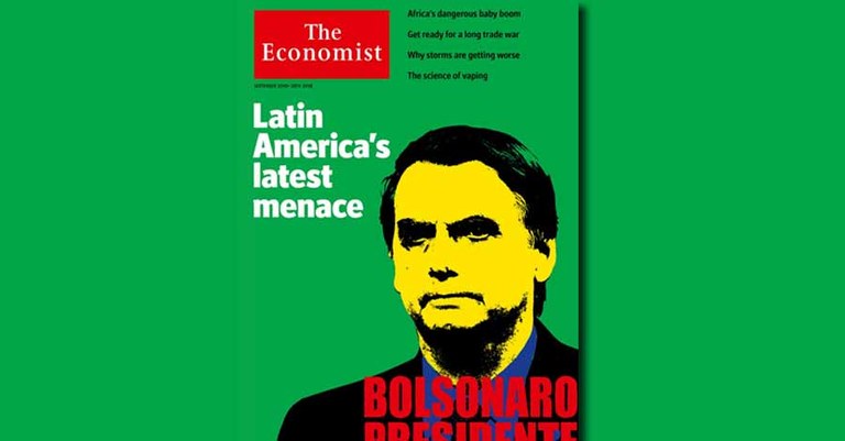 Bolsonaro tem 43% de rejeição, além da Economist, é claro. Haddad tem 29%. E Ciro tem 22%.