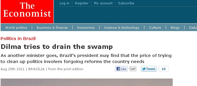 Saiu no Globo: 'The Economist' diz que Dilma Rousseff tenta secar o pântano de Brasília.
