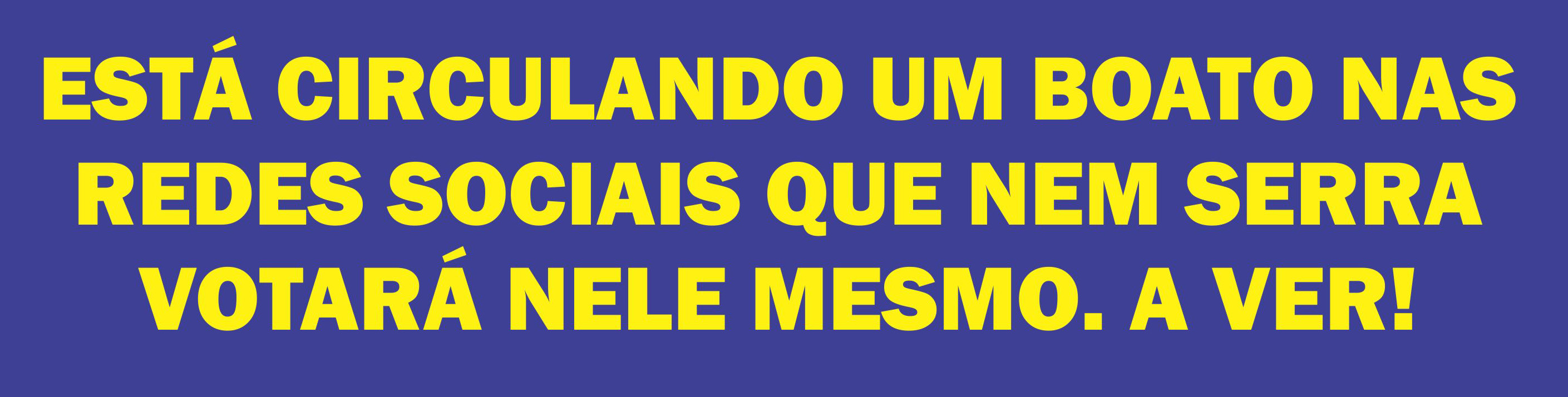 Política Você está aqui: Página Inicial / Política / 2012 / 08 / 30 / Redes sociais saúdam rejeição de Cerra ! Redes sociais saúdam rejeição de Cerra !Rejeição fenomenal de Cerra repercute nas redes sociais. Tweet Compartilhar Compartilhar Email publicado 30/08/2012 Comments O amigo navegante Miguel Baia Bargas enviou essa desinteressada contribuição à campanha do "mais consistente", da "elite da elite".Começa assim:Então ...