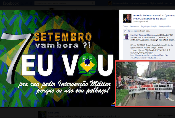 Reproduzo, aí em cima, um deles, presente no Facebook, ligado ao mesmo grupo de picaretas que Andre Barrocal apontou em sua reportagem O desfile golpista, na Carta Capital.