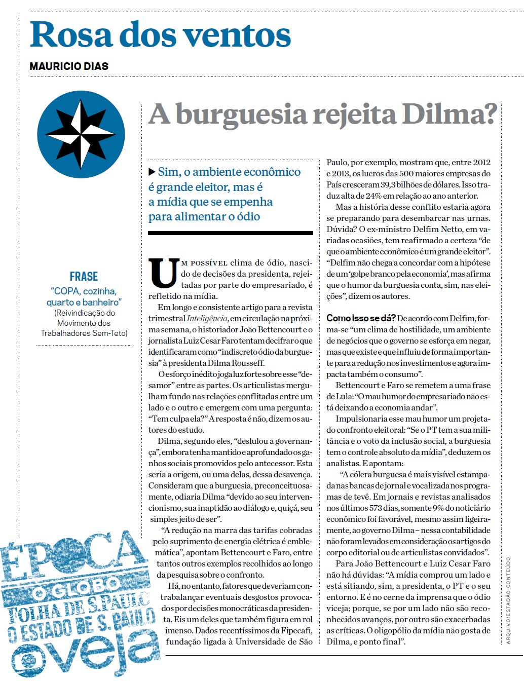 O Conversa Afiada reproduz artigo de Mauricio Dias, na imperdível "Rosa dos Ventos", da Carta Capital: