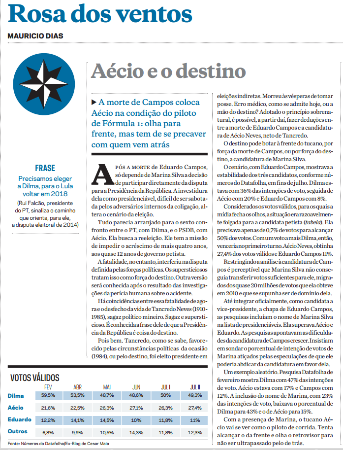 "Aécio vai se ver como piloto de corrida: tenta alcançar o da frente e olha o retrovisor para não ser ultrapassado pelo de trás"