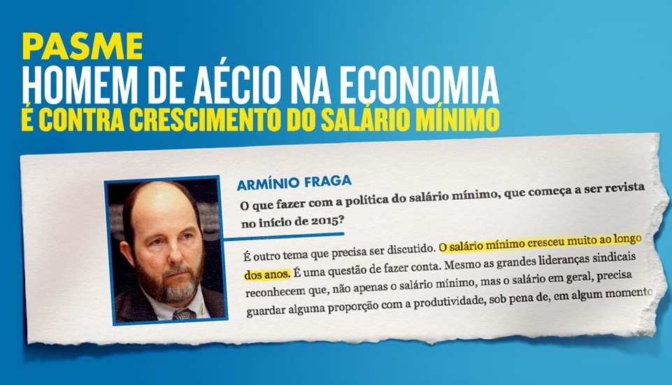 Está em jogo o salário mínimo, que o candidato a Min. da Fazenda de Aécio, acha que está alto demais;