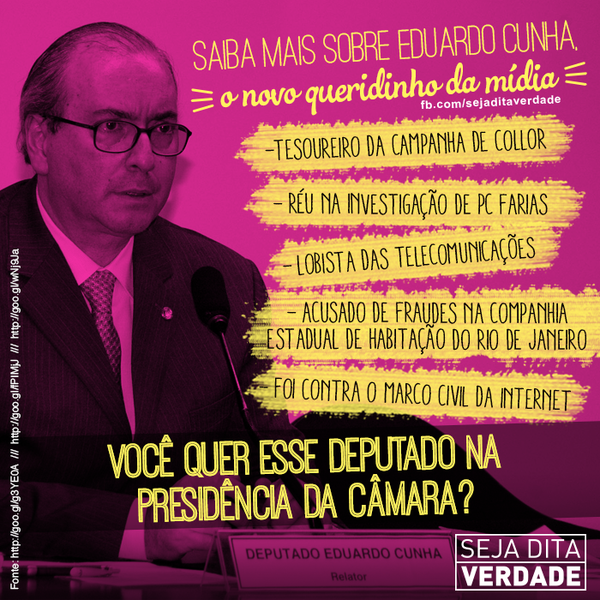 “A possibilidade de eleição de Eduardo Cunha para a Presidência da Câmara – e aqui não estou fazendo nenhum juízo moral sobre ele – leva o PMDB a uma situação de alta contradição política”, disse.