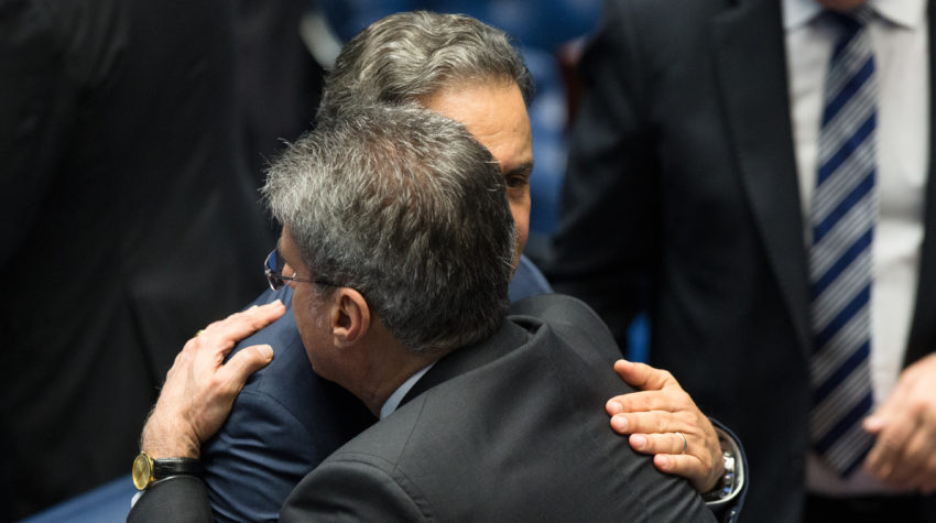 Ao final, o abraço apertado do 'essa porra' Jucá