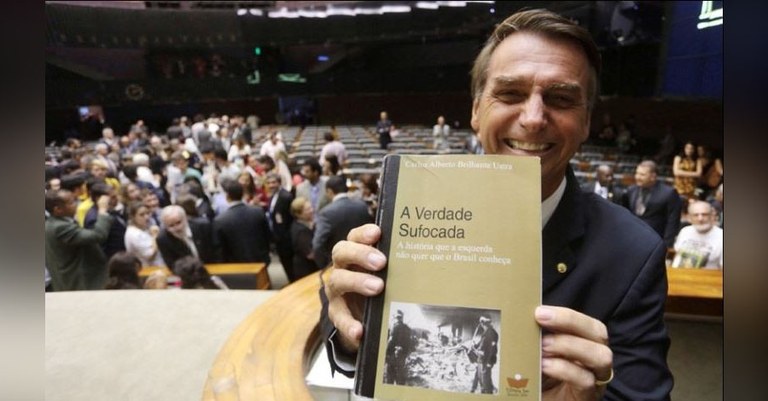 (...) Mais tarde, durante um discurso no início da noite desta quinta em um ginásio de esportes ocupado por militantes, Bolsonaro homenageou o coronel do Exército Carlos Alberto Brilhante Ustra, morto em outubro de 2015. Em 2008, Ustra se tornou o primeiro militar a ser declarado pela Justiça como torturador do regime militar. Ele chefiou o DOI-Codi de São Paulo, um dos principais centros de tortura e repressão durante a ditadura militar.