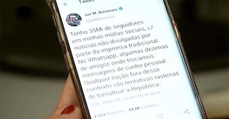 Na quarta-feira 26/II, Bolsonaro não contestou a origem ou o propósito dos vídeos - apenas disse que "tenho no WhatsApp algumas poucas dezenas de amigos onde, de forma reservada, trocamos mensagens de cunho pessoal".