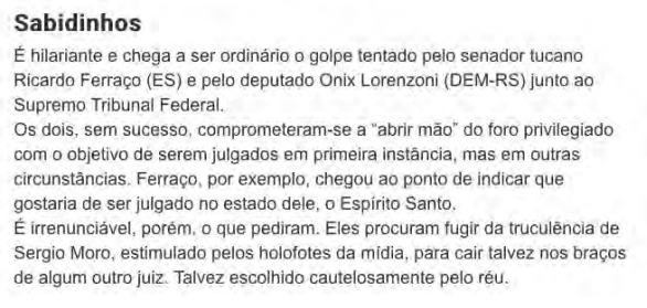 Em tempo2: "Rui (com "i") Barbosa" de Guarapari foi a forma carinhosa que um amigo navegante do Conversa Afiada encontrou para se referir ao senador Ferraço, golpista da primeira hora. Ele tem uma retórica tão pedante e engordurada quanto oca. Como se diz da linguagem do FHC Brasif: cheia de colesterol. - PHA