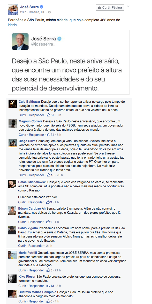 Serra vira motivo de piada ao desejar que São Paulo “encontre prefeito à altura” da cidade